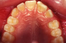 La paziente S.A., di anni 12, presenta morso crociato posteriore monolaterale (fig. 1) dovuto a deviazione della mandibola verso destra in fase chiusura , pertanto le linee interincisive risultano non coincidenti (fig. 2). Si rileva inoltre l’assenza in arcata del canino superiore di sinistra ( incluso) e carenza di spazio per lo stesso (fig. 3 e 4).